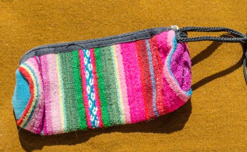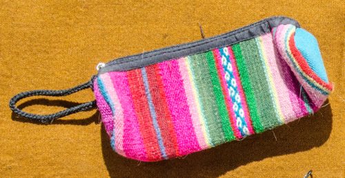Small round zipper bag in the colors of AN. Fully lined. This type of bag is perfect for holding art and school supplies, such as pens.