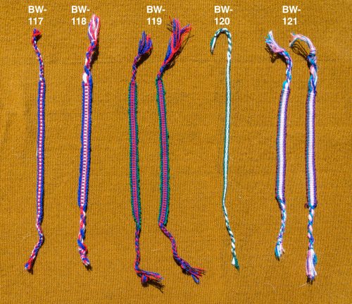 Very thin, simple handwoven bracelet in blue, red and white.