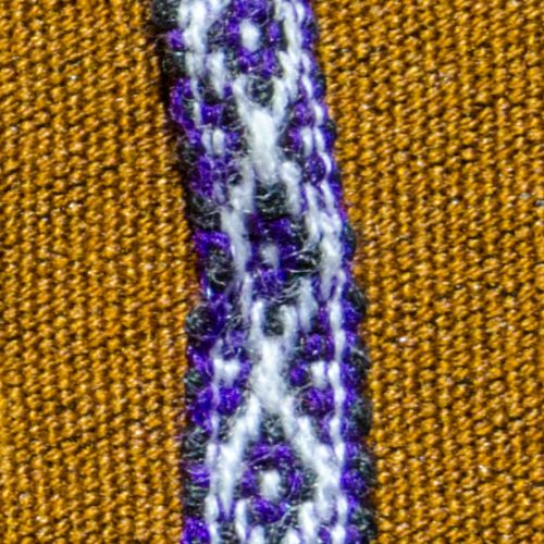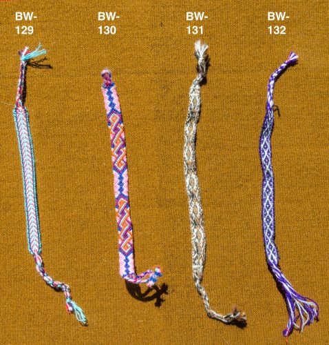 Handwoven thin bracelet in white and purple.