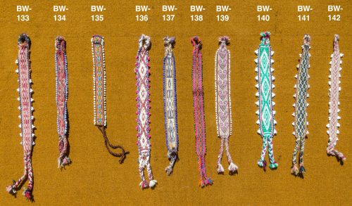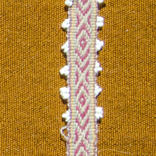 Finely woven bracelet in red and light brown with white bead trim. Reversible!
