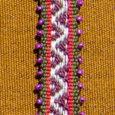 Handwoven bracelet in browns, natural and green with a bead trim in a plum color.