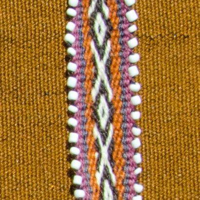 Earth colored, handwoven bracelet in terra cotta, green and plum with a design of X and diamonds in black and white, and a white bead trim. Grounded and strong!