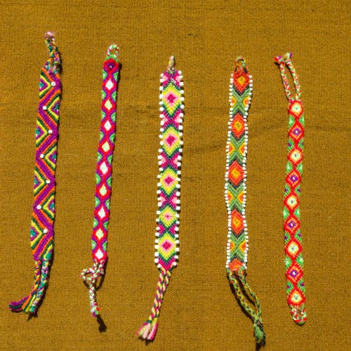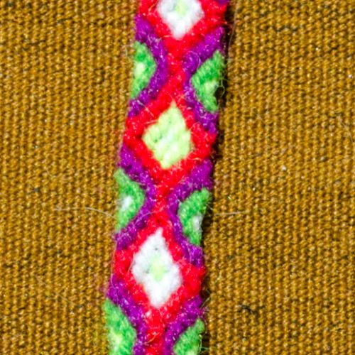Diamond patterned bracelet in red, plum and greens from the remote area of Ankasmarka.
