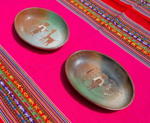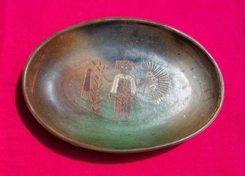 Simple, Oval Flat Bowl with Pachamama and Corn from the sacred site of Raqch’i.