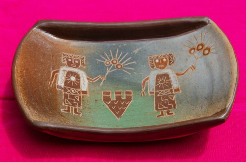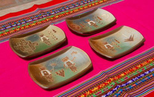 Simple and strong curved dish with Pachamama and Pachatayta from the sacred site of Raqch’i.
