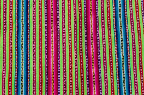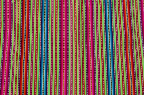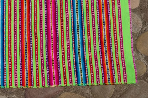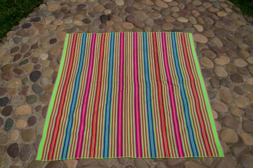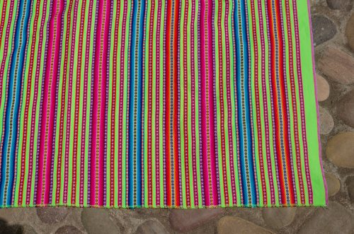 Very vibrant lime green lliclia with thin stripes in magentas, oranges and blues.
