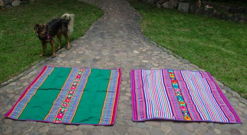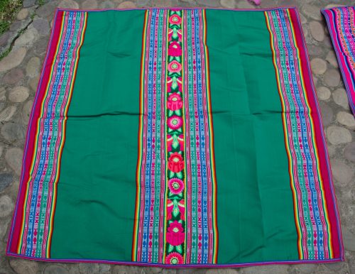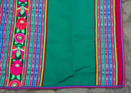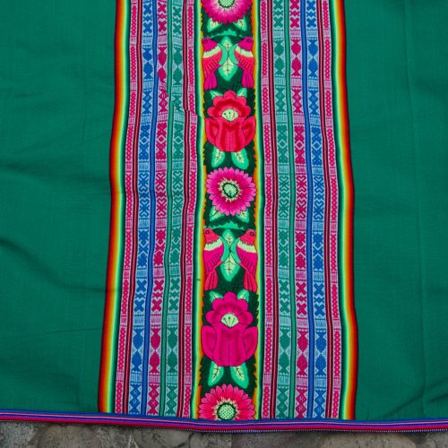 Gorgeous Green Lliclia with a center strip of embroidered flowers and birds. Has a woven edge. Is brighter and more vibrant than shown in photos.