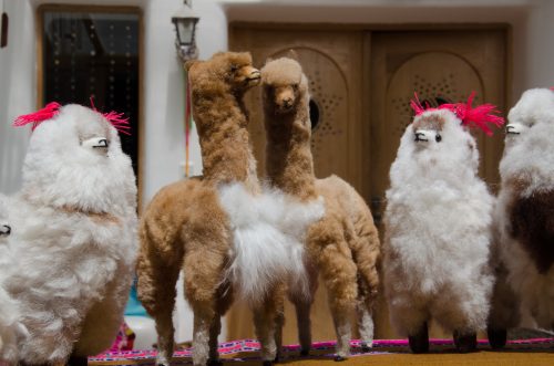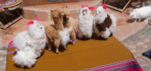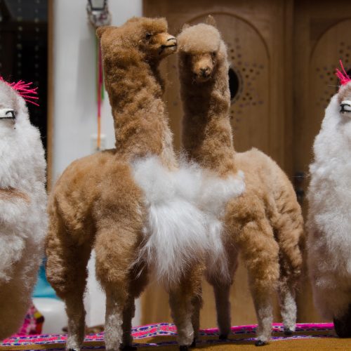 Fluffy, tall, medium brown Vicuña. Has a white patch on its furry chest.
