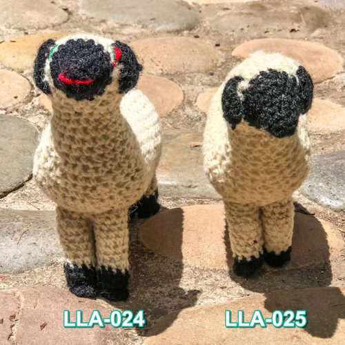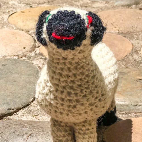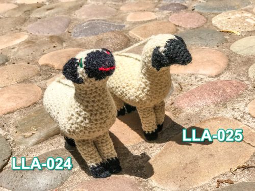 Very soft and cuddly, hand knitted sheep from the village of Maras, near Moray. Has a red smile!