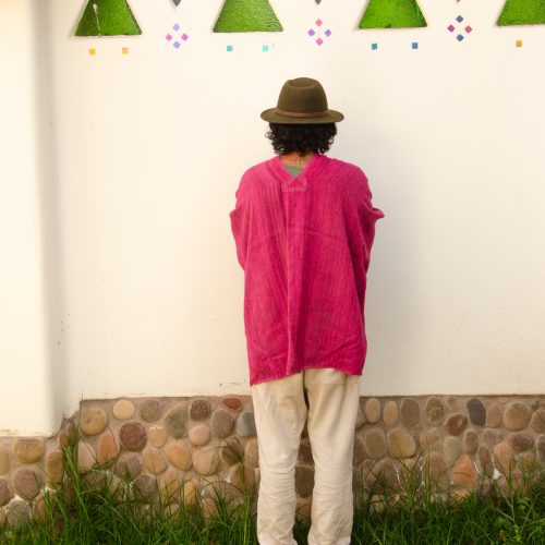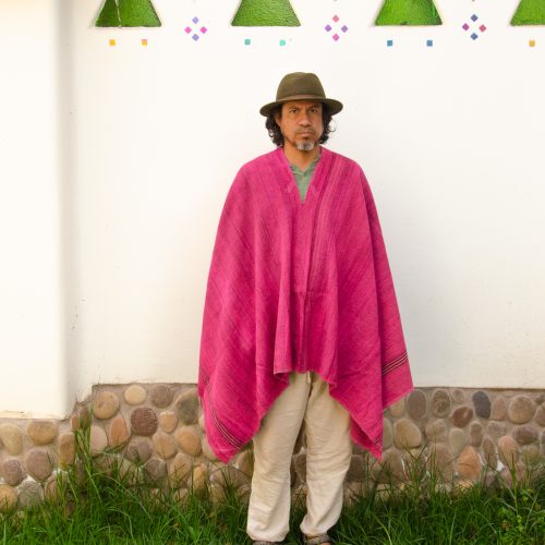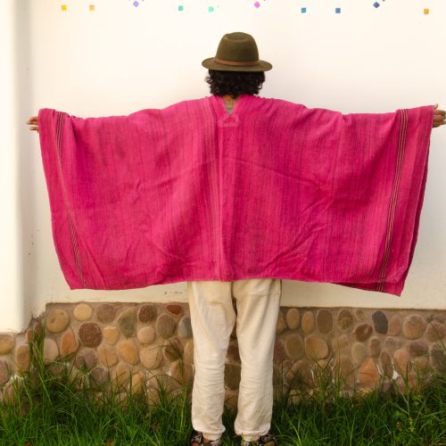 Lightweight Magenta Poncho with thin stripes of brown, pink & magenta.
