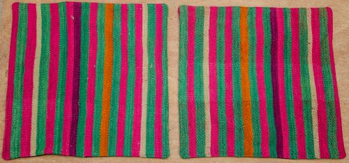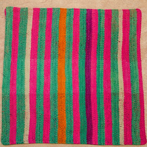 Beautiful Handwoven Pillow Covers from Peru in stripes of pinks, oranges, natural and greens! Each pillow cover is different, but complimentary.