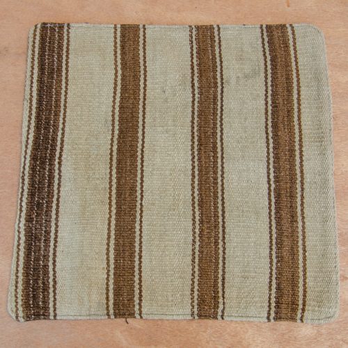 Handwoven Pillow Cover of Natural Wool in Brown and Tan with zipper closure on the back.