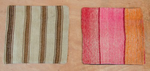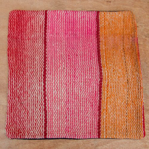 Handwoven Pillow Cover in soft shades of oranges, pinks and red with natural.