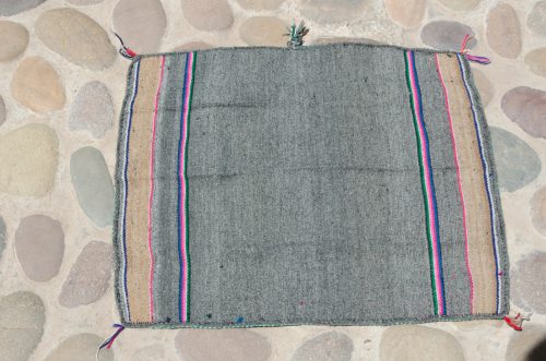 This is a small, finely woven textile in natural alpaca of various shades. Woven into it are also two thin stripes of green and magenta ~ the colors of AN!
