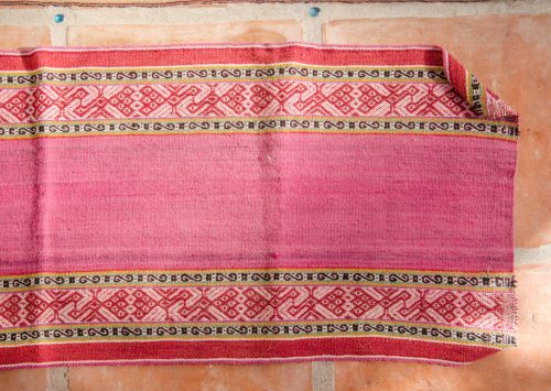 Very special, rectangular weaving in natural rose color with geometric designs of birds. Perfect to put on a table or use for a ceremony.