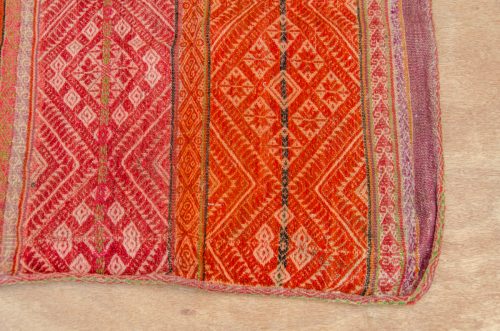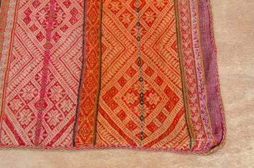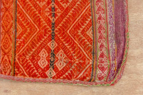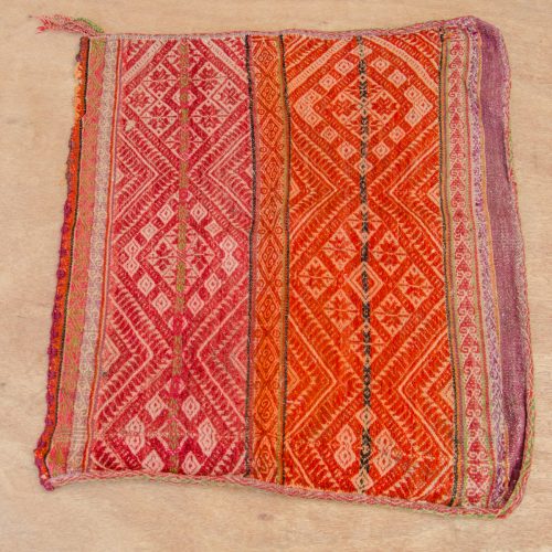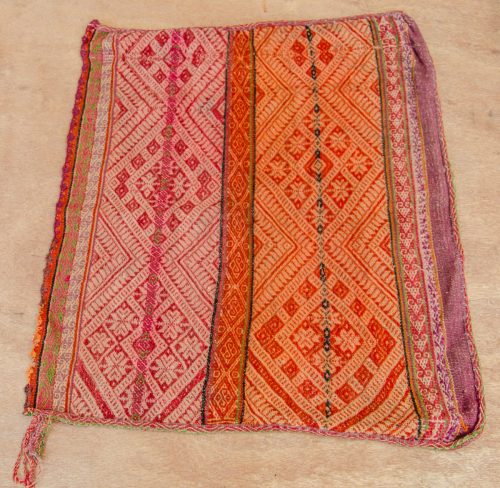 This is a very special, small antique weaving in soft reds on natural, with gorgeous geometric designs. Perfect for an altar cloth or a sacred medicine bundle.