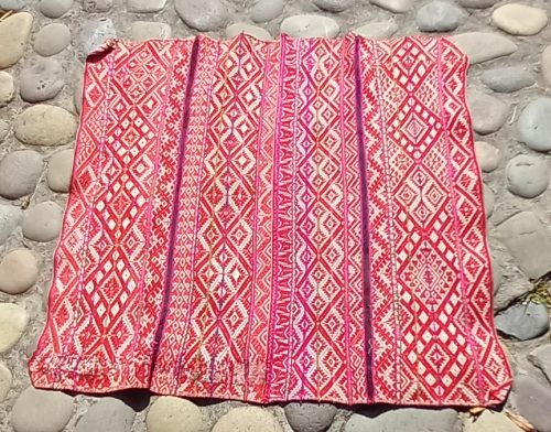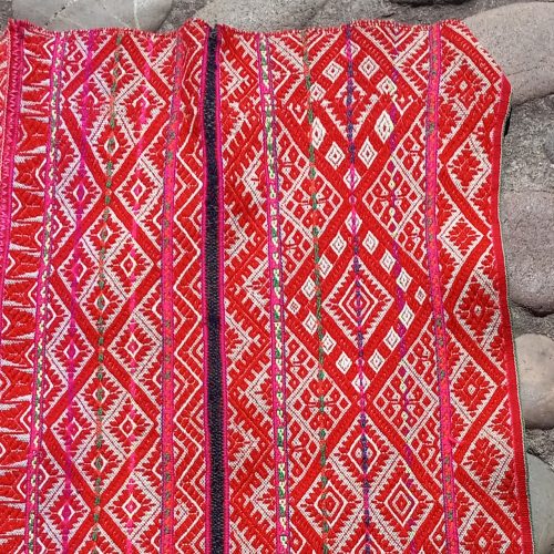 Superb lliclia full of traditional Inca geometric designs in reds and natural. This is very finely woven. Perfect as an altar for ceremonies or to use for readings of the Cards of AN.