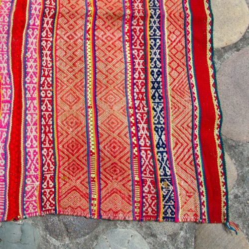 Small antique weaving full of geometric designs in various reds. A perfect Card Reading cloth!