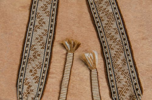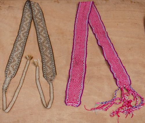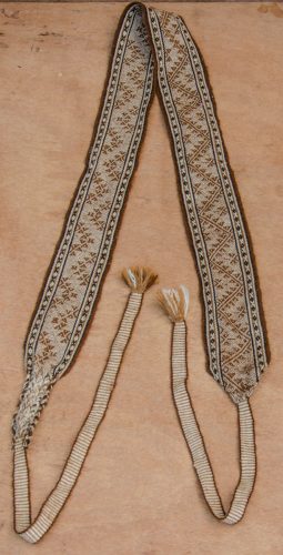 Finely Woven Belt from alpaca fiber from the village of Lares. Soft and superb quality. In natural alpaca fiber colors of brown and natural. Has a reversible geometric pattern on both sides.