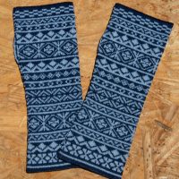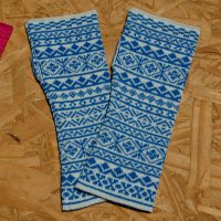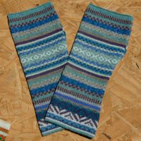 G-064 Long Fingerless Gloves in geometric patterns in blues-greys-browns was last modified: