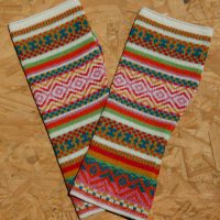 G-065 Long Fingerless Gloves with geometric designs in oranges & greens was last modified: